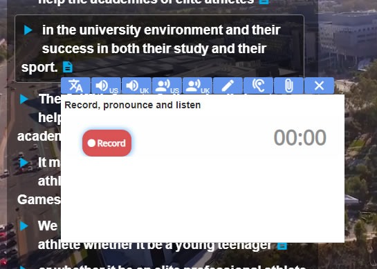 Puede grabarse por palabra y subtítulo haciendo clic en el icono de escuchar