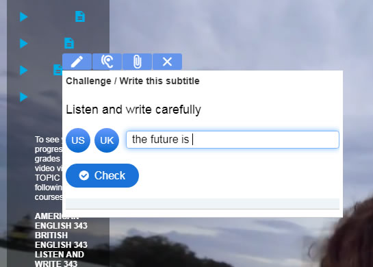 Puede practicar la escritura por palabra y la escritura por subtítulos haciendo clic en el ícono de lápiz